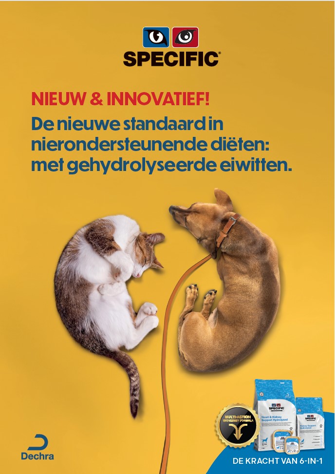 De nieuwe SPECIFIC (Heart &) Kidney Support Hydrolysed-diëten en de vernieuwde SPECIFIC (Heart &) Kidney Support-diëten werken op een meervoudige manier ter ondersteuning van de darm-nier as en helpen de kat/hond in goede conditie te houden, de ziekteprogressie te vertragen en de levensduur van het huisdier te verlengen.