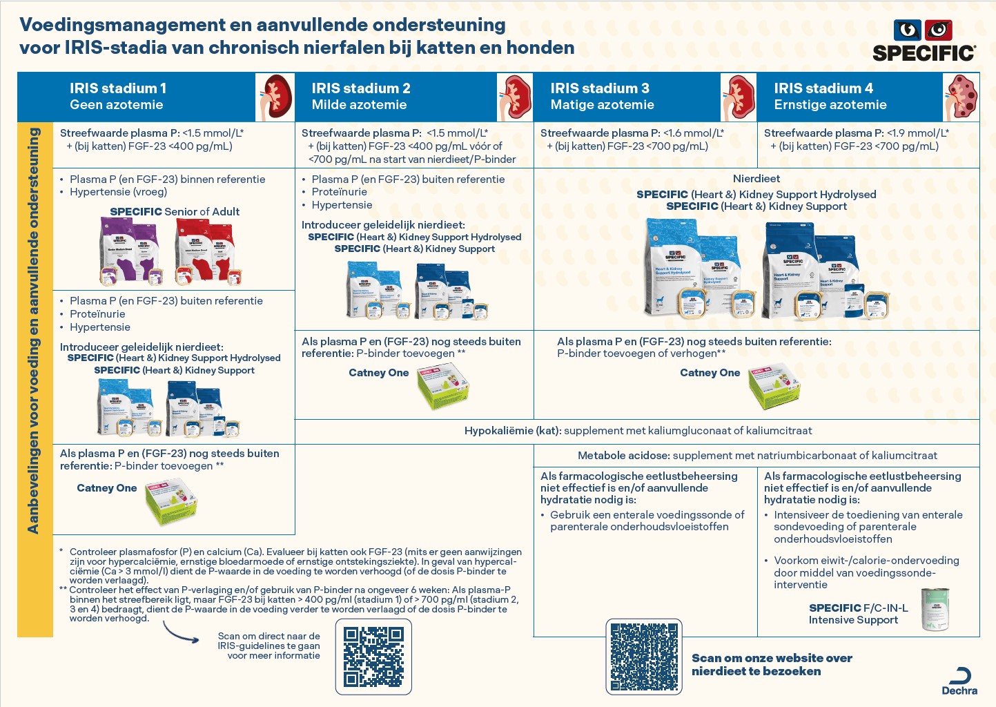 De nieuwe SPECIFIC Kidney Support Hydrolysed diëten en de vernieuwde SPECIFIC Kidney Support diëten werken op een meervoudige manier ter ondersteuning van de darm-nier as en helpen de kat/hond in goede conditie te houden, de ziekteprogressie te vertragen en de levensduur van het huisdier te verlengen. De nieuwe formule heeft alle basiskenmerken van een nierdieet, maar het heeft daarnaast ook een extra uitgebreid pakket aan nierondersteunende eigenschappen: