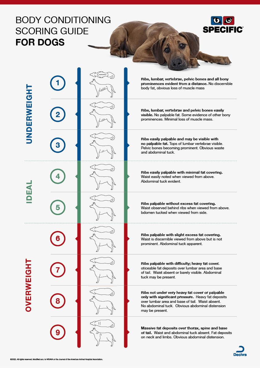 - Laat de hondeneigenaar zien hoe ze de ribben van hun hond kunnen controleren. Er zijn nu ook checkers voor de lichaamsconditie op verpakkingen van veel dierenvoedingsproducten om hondeneigenaren te helpen het gewicht van hun hond te bepalen.